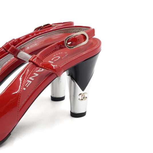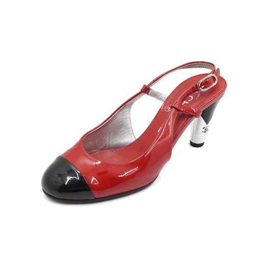 Chanel(샤넬) G26954 레드 블랙 페이던트 펌프스 슬링백 CC로고 힐 여성 구두aa53405
