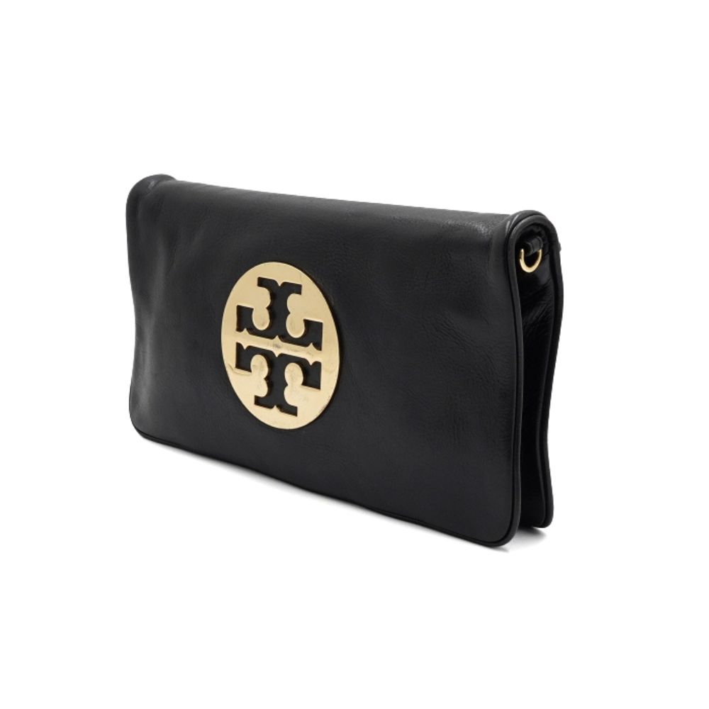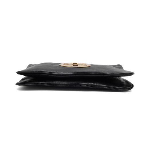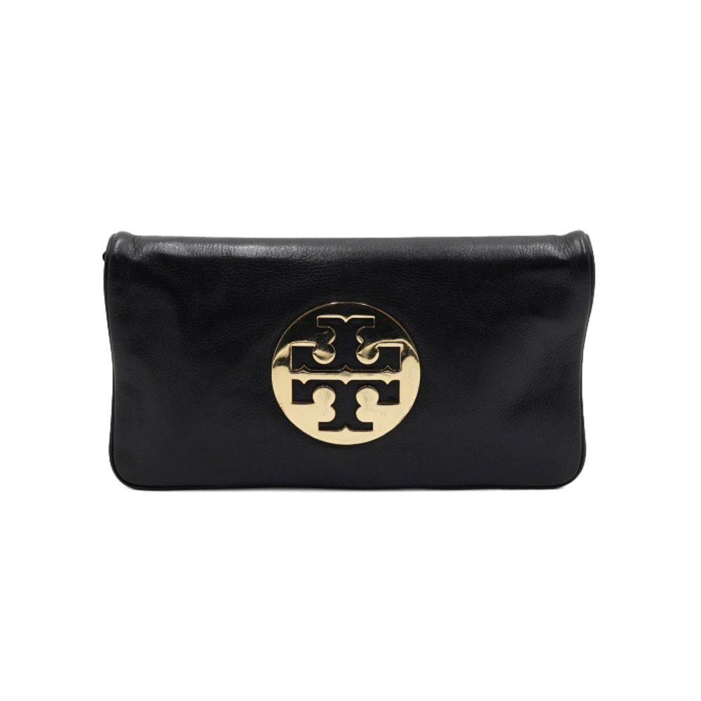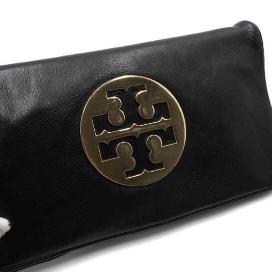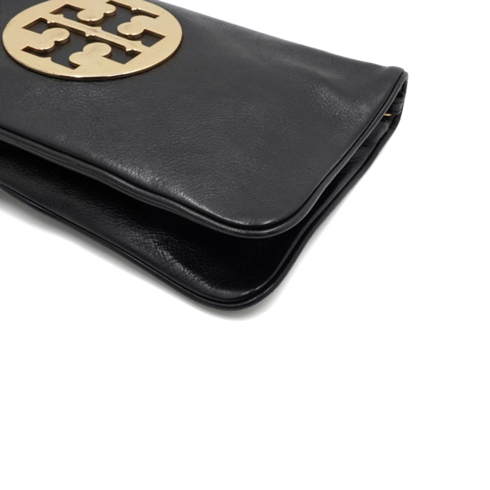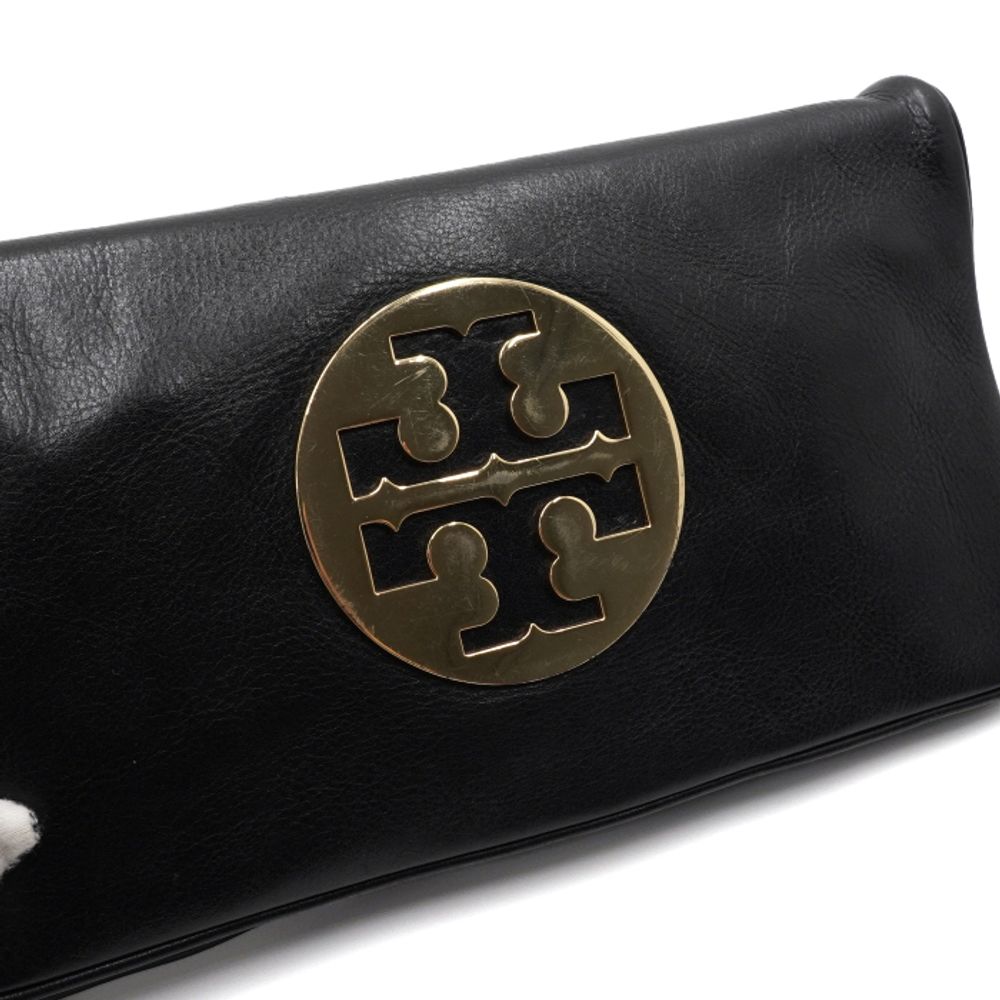 TORY BURCH(토리버치) 블랙 레더 금장 아만다로고 플랩 클러치백aa55497