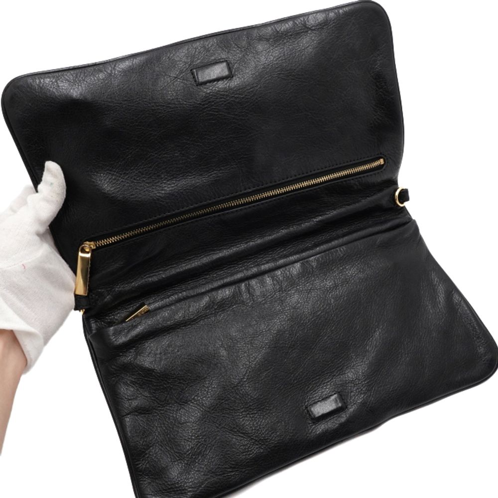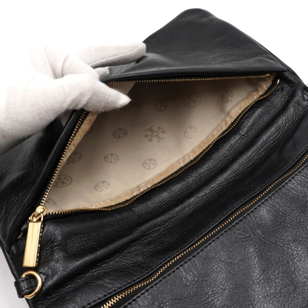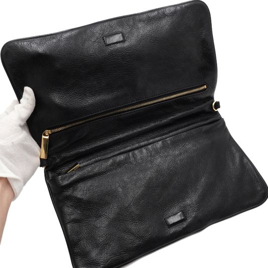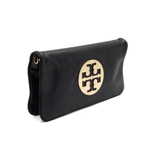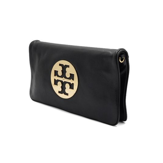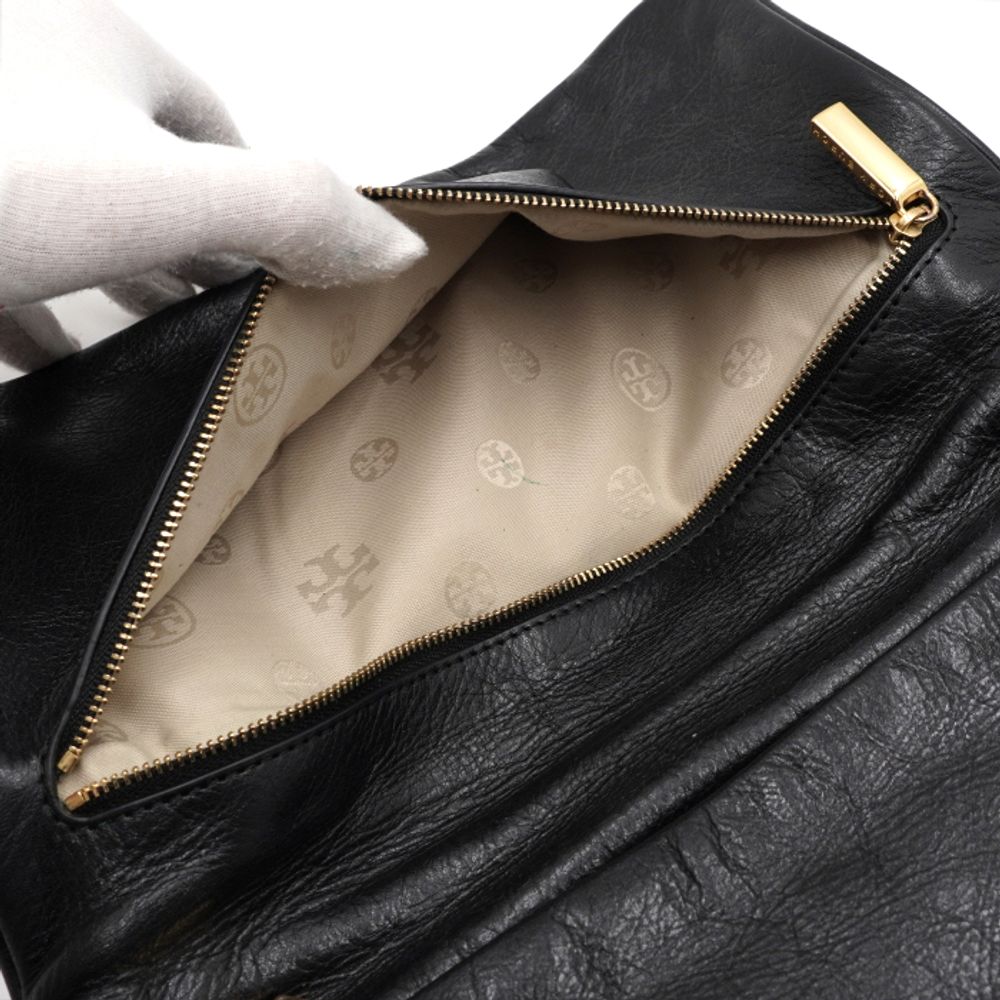 TORY BURCH(토리버치) 블랙 레더 금장 아만다로고 플랩 클러치백aa55497