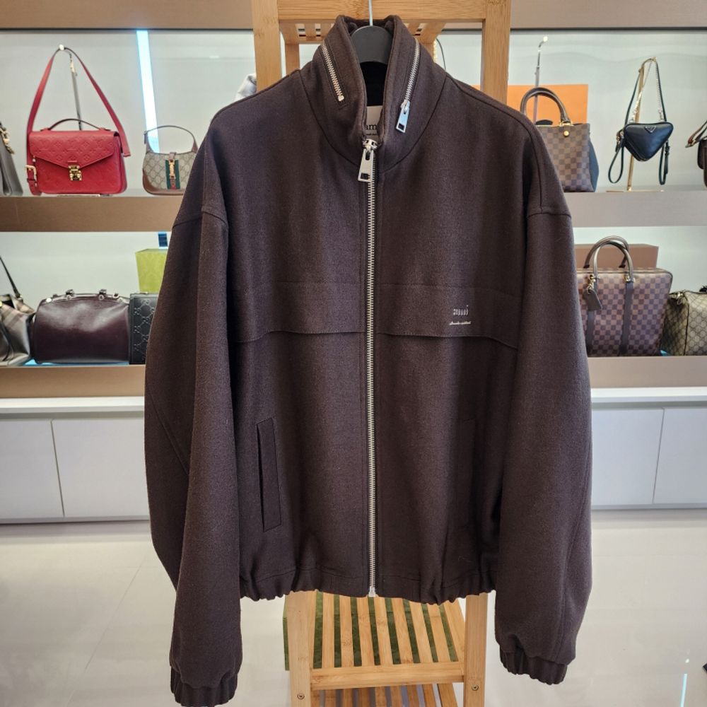 ami 아미 드라이 울 윈드브레이커 브라운