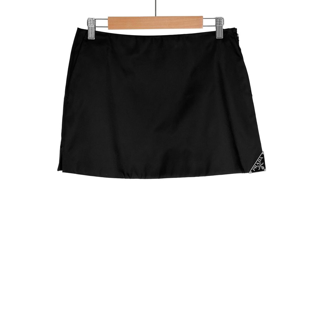 [40] 프라다 여성 빅 삼각로고 리나일론 미니 스커트 치마 블랙