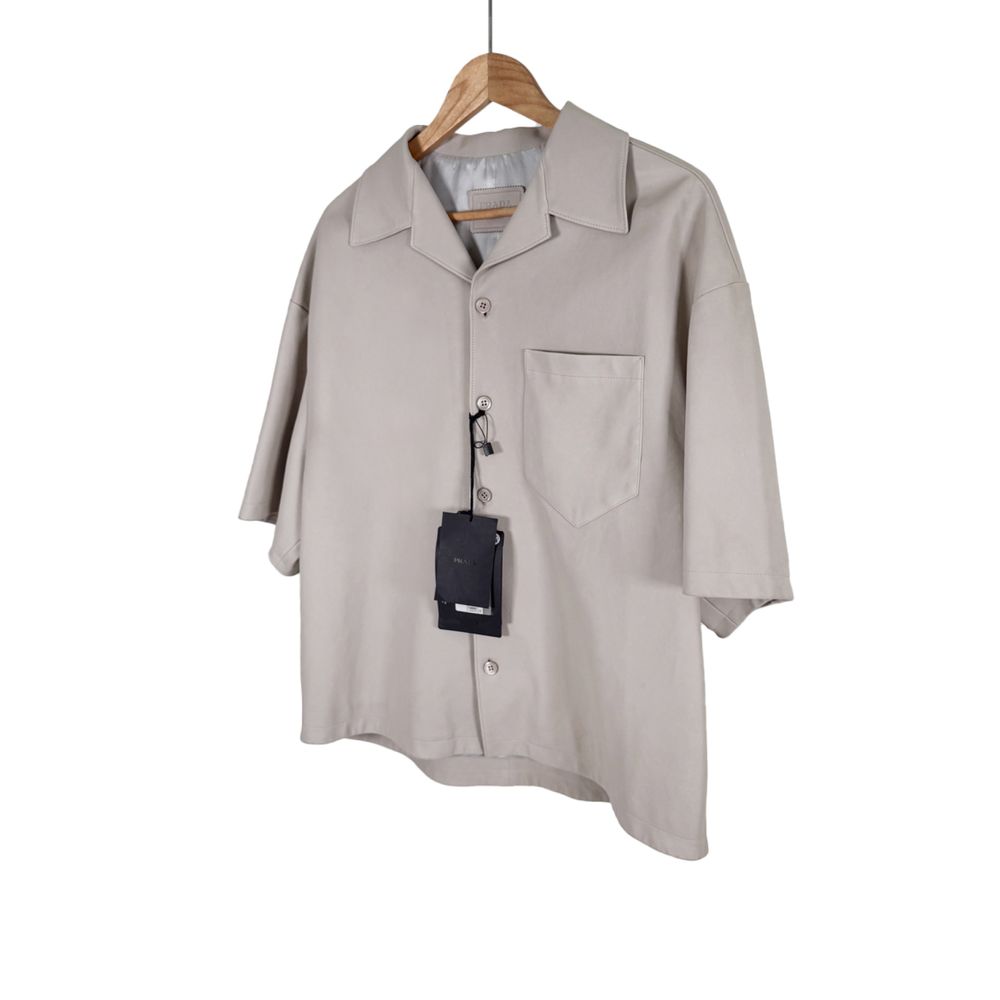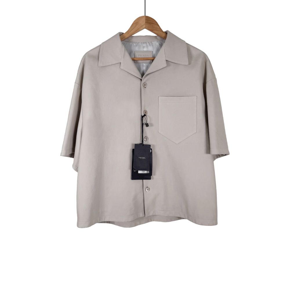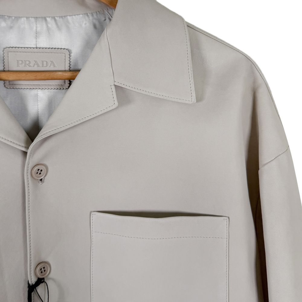 [50] 프라다 남성 나파 레더 삼각로고 램스킨 반팔 셔츠 자켓 베이지