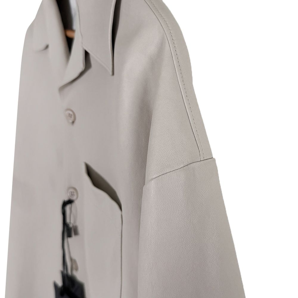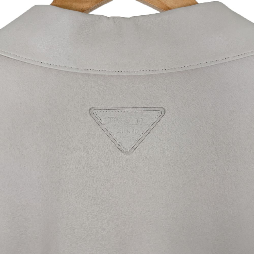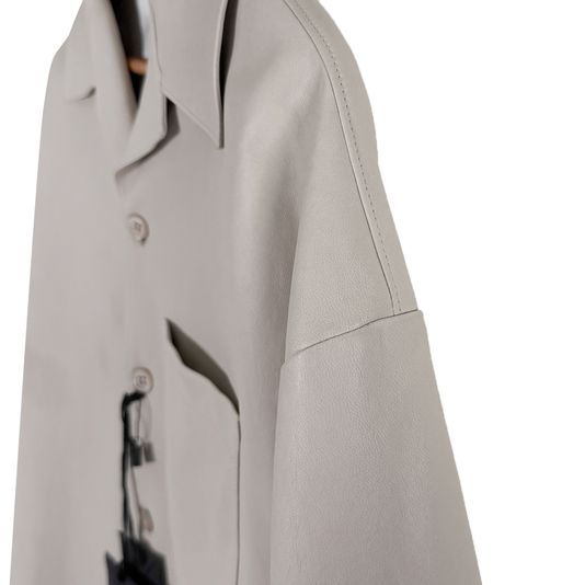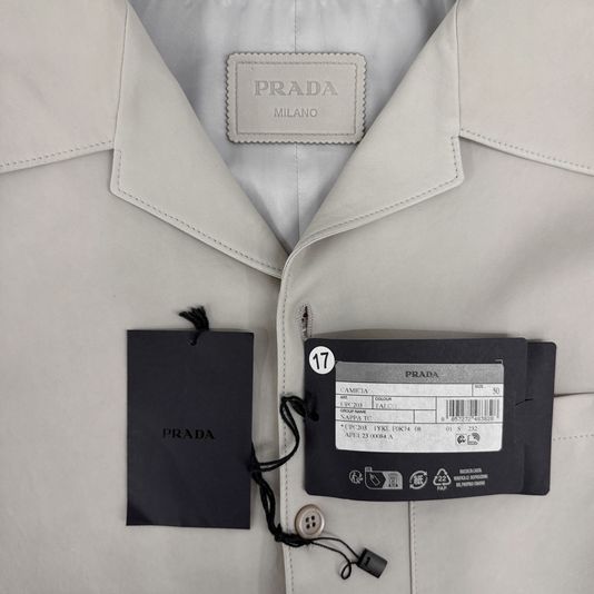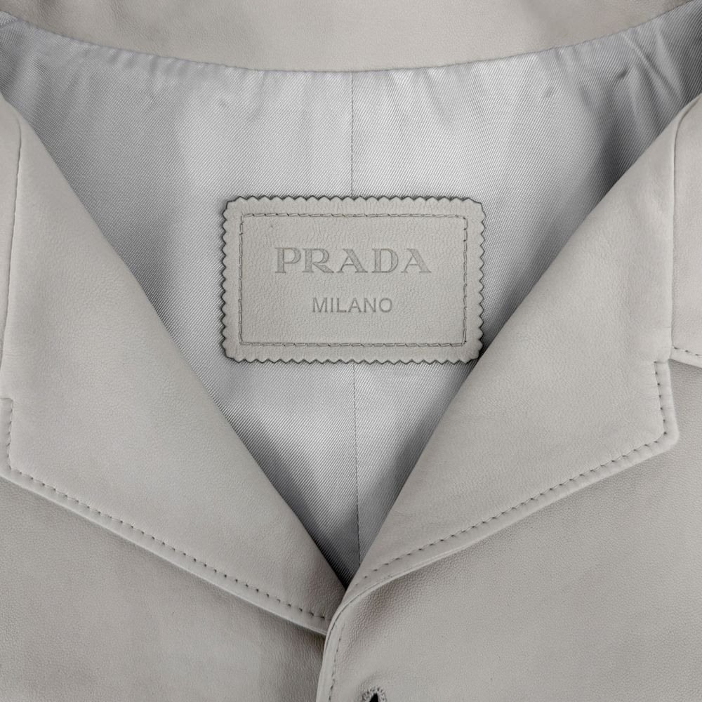 [50] 프라다 남성 나파 레더 삼각로고 램스킨 반팔 셔츠 자켓 베이지